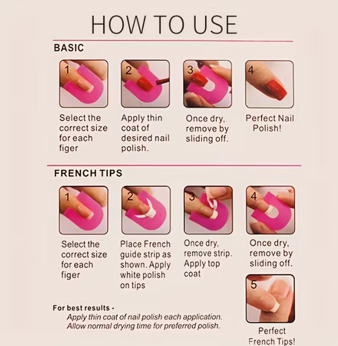• Use: Simply choose the closest fitting guard and slide it over your nail, then apply polish.