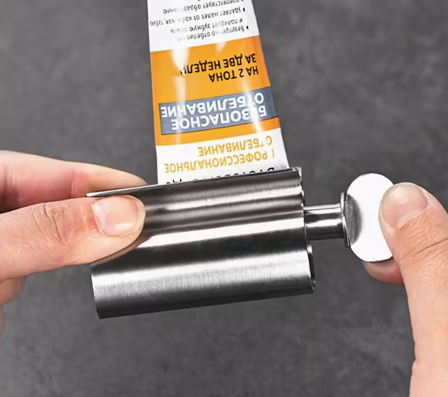 It works by inserting the end of the tube into the roller slot and turning the handle, which neatly squeezes out the contents without waste. The durable stainless steel body ensures long-lasting use, while the ergonomic turning knob makes it easy to operate with minimal effort.